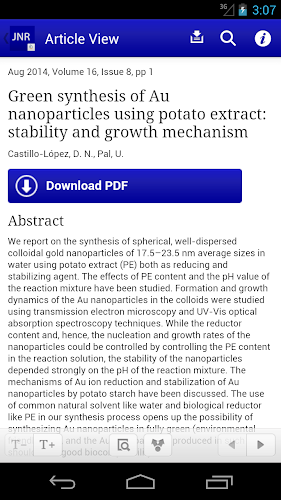 Využijte nejnovějšího vývoje v oblasti vědy a technologie nanočástic pomocí aplikace Journal of Nanoparticle Research App. The Journal of Nanoparticle Research je recenzovaný časopis publikovaný společností Springer Science+Business Media, který zkoumá konkrétní koncepty, vlastnosti, jevy a procesy struktur v rozsahu velikosti nanočástic. Časopis nepřetržitě publikuje originální a experimentální výzkum v oblasti vědy a technologie nanočástic napsaných předními členy poleTato bezplatná aplikace poskytuje cenné funkce včetně: