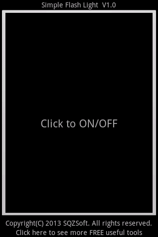 * Velmi jednoduché použití, stačí spustit tuto aplikaci a kliknutím na jedno tlačítko zapnete / vypnute baterku fotoaparátu. Žádné další možnosti k nastavení;