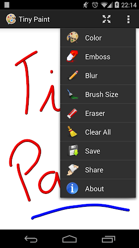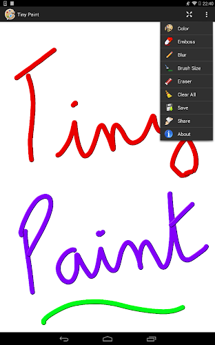 tiny paint je jednoduchá a efektivní aplikace pro kreslení.vyberte si barvu, vyberte si štětec a efekt a užijte si kreslení drobnou barvou! můžete také importovat obrázek a použít drobné malování, když sdílíte obrázek na svém zařízení.