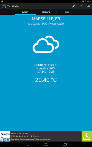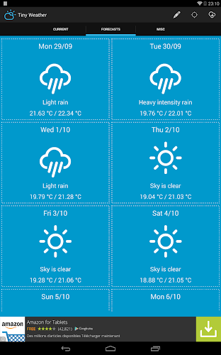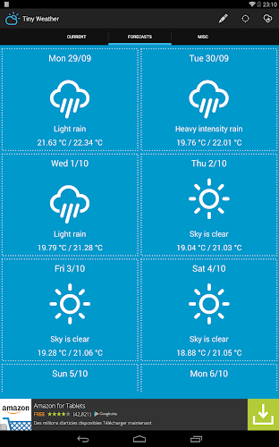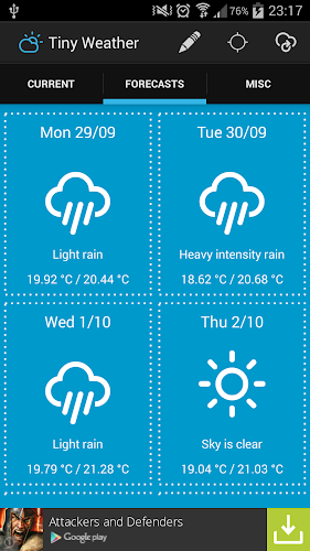 Analýza A Revize Aplikací Pro Android: Tiny Weather, Vyvinuté Společností Sylvain Saurel. Uvedeno V Kategorii Počasí. Aktuální Verze Je 1.1, Aktualizována Na 11/10/2015 . Podle Recenzí Uživatelů Na Google Play: Tiny Weather. Dosaženo Více Než 1,000 Instalací. Tiny Weather Má V Současné Době Recenze 44, Průměrné Hodnocení 4.1 Hvězd