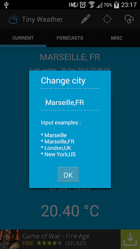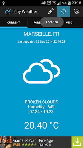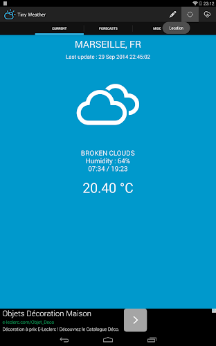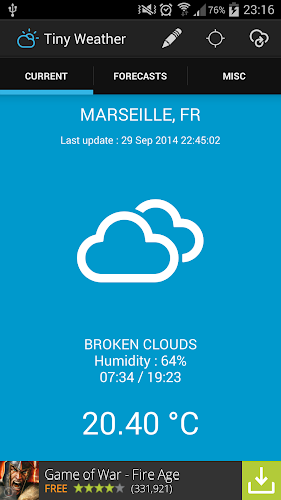 tiny weather je malá a účinná aplikace pro počasí, která vám poskytuje aktuální a předpovědi počasí každý den.tiny weather vám umožní zadat vaše město nebo zjistit vaši polohu pomocí vašeho zařízení.