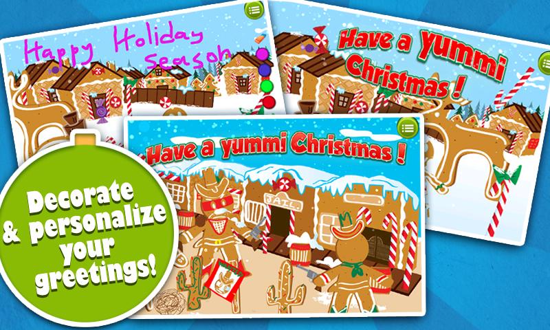 A pro ty, kteří nechtějí nic příliš ironického, existuje sladká scéna perníku obklopeného cookies a plovoucí bonbóny s čokoládovou fontánou explodující poblíž. Dotkněte se tlačítka barvy/barvy a dále přizpůsobujte své karty pro e-rozrhaní a ozdobujte je. Pošlete e -mail každému z těchto šílených a veselých pozdravů a přidejte svůj osobní text svým přátelům nebo rodině. To přispívá k úžasnému a jedinečnému vánočnímu pozdravu. Odvažte se být odvážný a kreativní s šílenou vánoční ecard. Tato aplikace pro pozdrav s prázdninami je jistě v této sezoně vztek!
