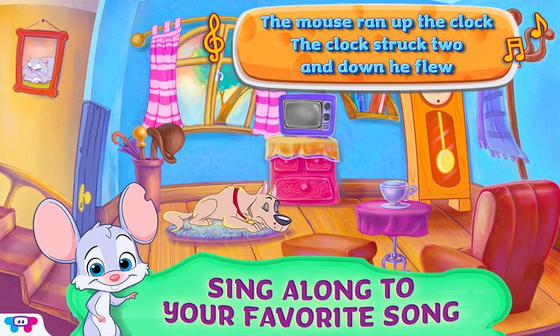 Zpívejte spolu s klasickou písní Hickory Dickory Dock, ve všech nových interaktivních dobrodružstvích! Vzdělávací mini hry a aktivity, které inspirují fantazii a kreativitu vašeho dítěte! Užijte si speciální okamžiky, když zpíváte tuto píseň společně a cvičte si vyprávění času s zábavnými hodinovými hrami!Hickory Dickory Dock, myš běžela po hodinách! Zpívejte spolu s vaší oblíbenou písní, hrajte zábavné vzdělávací hry a dozvíte se o hodinách! Klepnutím na myši, hodiny a další rozkošné animace zjistěte, co se stane! Naučteme se říkat čas! Hodiny tikají pryč!