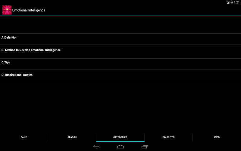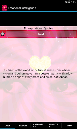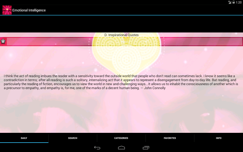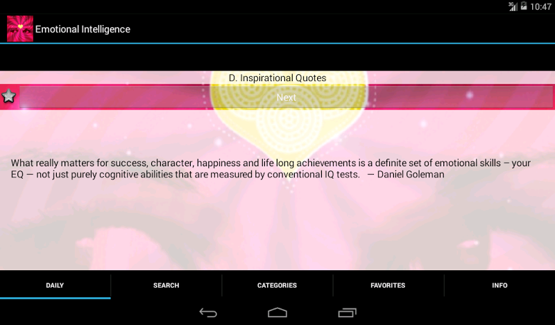 Analýza A Revize Aplikací Pro Android: Emotional Intelligence Quotes, Vyvinuté Společností TapCoder. Uvedeno V Kategorii Životní Styl. Aktuální Verze Je 3.13, Aktualizována Na 26/05/2014 . Podle Recenzí Uživatelů Na Google Play: Emotional Intelligence Quotes. Dosaženo Více Než 30 Tisíc Instalací. Emotional Intelligence Quotes Má V Současné Době Recenze 149, Průměrné Hodnocení 3.8 Hvězd