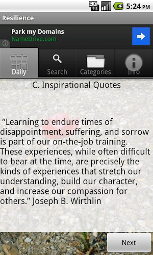 Tato aplikace vám pomůže rozvíjet odolnost. Naučit se, jak rozvíjet nebo posílit vaši odolnost, je důležitou součástí pocitu celého a schopného vyrovnat se s každodenními potížemi života a příležitostnou hroznou událostí. Zde je několik návrhů, které vám pomohou.