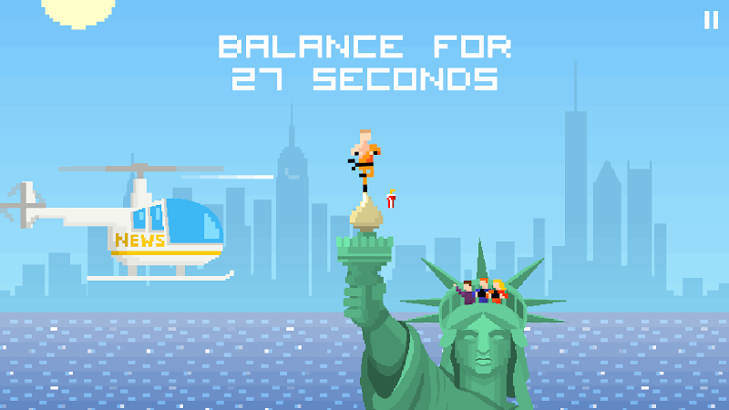 Vyvažte si cestu ke slávě! Můžete se stát dalším mistrem Shaolinu?!S úžasnými 2D pixelovými prostředími vyvážíte našeho hrdiny na nejtvrdších místech na světě, včetně na vrcholu budov, hor, sopek, sumo zápasníků, pohyblivých vlaků a dokonce i sochy svobody.