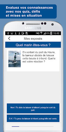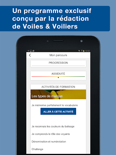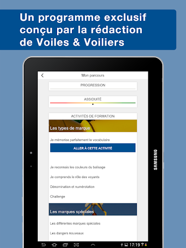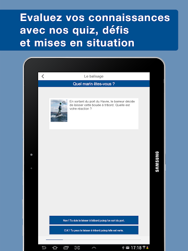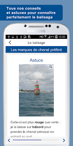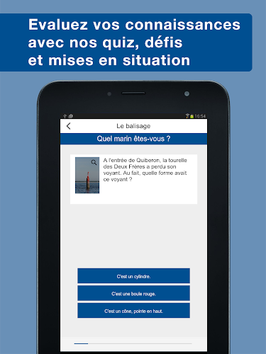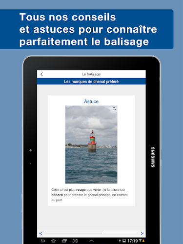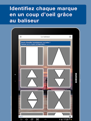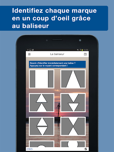 Námořní značení je nezbytnou součástí navigace. Perfektní znalost majáků a jejich významů vám umožňuje plavit v bezpečí. Voiles a plachetnice a Teach na Marsu navrhli tuto aplikaci, aby umožnili jachtařům snadno se naučit rozpoznávat různé značky značek, aby se vyhnuli nebezpečím nebo sledovali kanál.{hojně ilustrované výkresy a fotografiemi, interaktivní díky řadě testů znalostí, tato aplikace je první, která nabízí rychlé a hravé učení.
