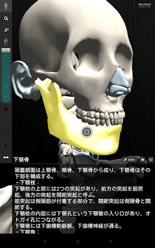 Viz formy a pohyby 3D lidského skeletu z jakéhokoli úhlu a zvětšení. Přesné reprodukce svalů, vazů, nervů, krevních cév a kostí hlavy a krku
