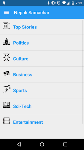 Nepali Samachar je aplikace pro agregátor zpravodajství pro Nepál. Tato aplikace najde nejnovější Nepálské zprávy na vašem telefonu Android.Tato aplikace prohledává zprávy prostřednictvím RSS kanálů poskytovaných různými zpravodajskými weby.