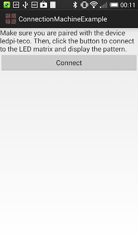 Příklad aplikace, která se připojuje k zobrazení LED připojení a zobrazuje se vzorec pohybu.Další informace naleznete na adrese http://www.teco.edu/cm/