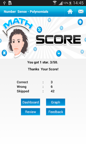 aplikace má více než 200 otázek s více než 20 grafy a má dvě úrovně 1. základní a 2. pokročilou plus spoustu jedinečných funkcí, jako je nastavení limitu pro počet otázek, na které by student chtěl odpovědět. má spoustu krásných grafů, které studentům vysvětlí, kde si stojí a jak postupují v jednotlivých tématech, a mohou zprávy a grafy sdílet se svými rodiči a přáteli prostřednictvím e-mailu a SMS.
