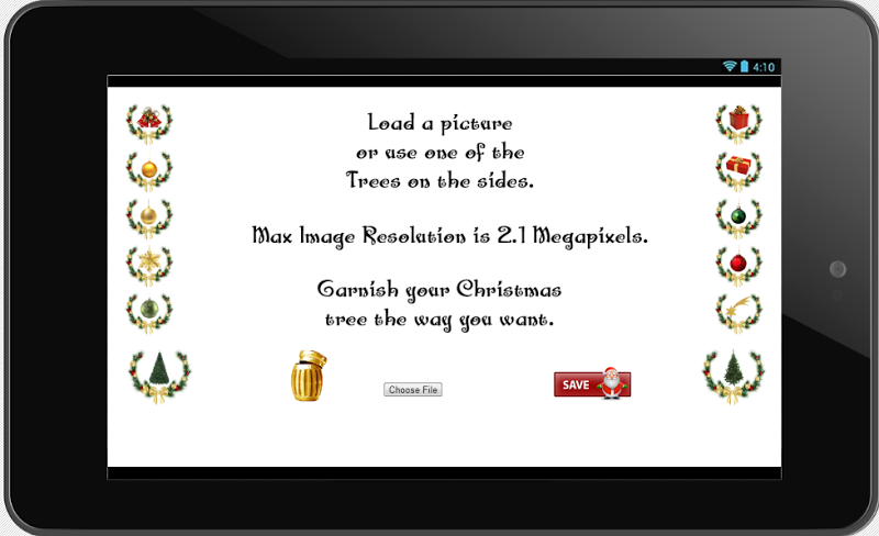 Toto je zábavná a snadno použitelná aplikace, kterou si můžete vytvořit vlastní vánoční strom !!Můžete vyfotografovat svůj vlastní strom nebo použít jeden z našich krásných stromů.