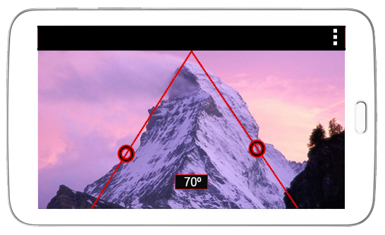 stačí přetáhnout červené tečky a aplikace vám ukáže úhel mezi nimi.