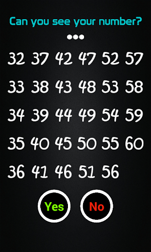 Přemýšlejte o libovolném čísle od 1 - 60 ... Aplikace vám ukáže 6 karet s čísly na ... a zeptejte se vás, zda je tam vaše číslo nebo ne ... Poté, co to provede několikrát, aplikace uhodne vaše číslo správně pokaždé.