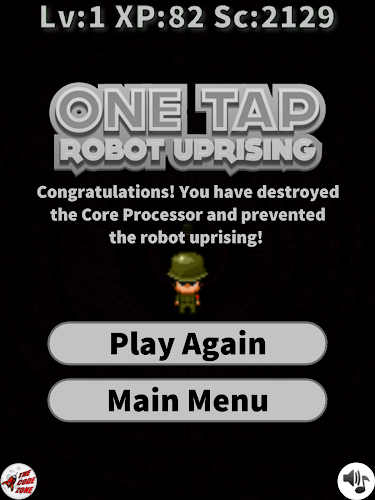 Jste obviněni z zastavení pravidla obřích zlých robotů. Je to vlastně docela jednoduché. Nejprve porazte slabé roboty. úroveň nahoru. Vyzvedněte si nějaké zbraně a pomocníky. a zavřete hlavní CPU.Oh, musíte to také udělat pouze s jedním klepnutím. Hodně štěstí, voják!