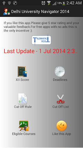 #1 offline aplikace pro rok 2014 Delhi University odříznutí seznamu, přijetí, harmonogramu, termíny a další podrobnosti.Zcela bezplatná aplikace bez reklam. pracuje offline.