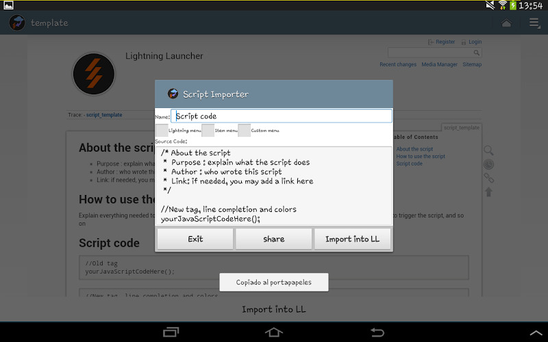 Nástroj pro import skripty z úložiště do Lightning Launcher jedním kliknutím