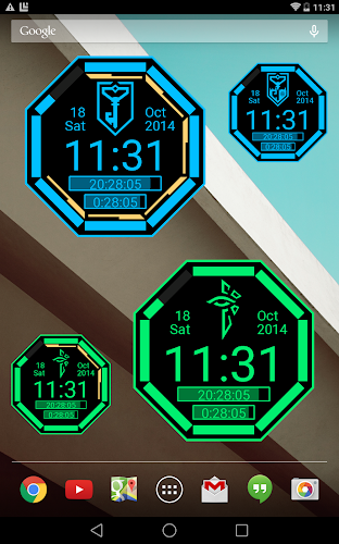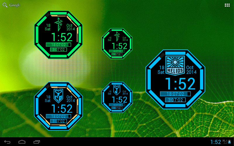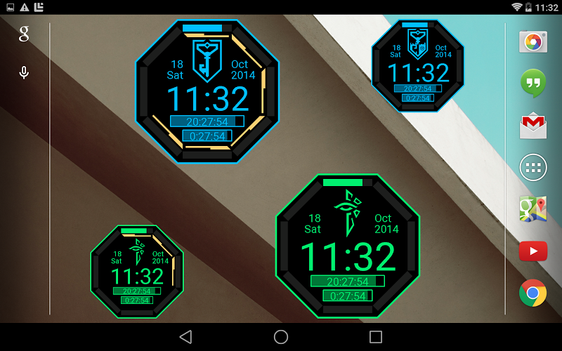 Integrovaná tvář hodinek pro Android Wear a Widget s hodinami s motivy Ingress
