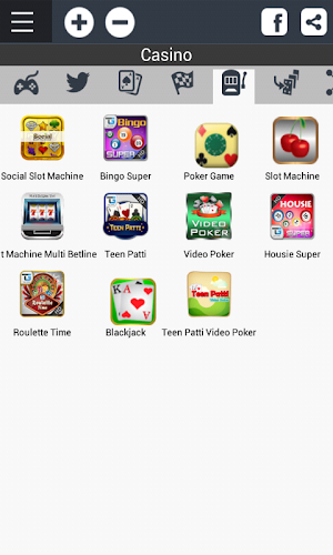 * uložte si do záložek své oblíbené hry, aplikace podle kategorií (jako kasino, karty, sociální sítě atd.)