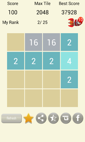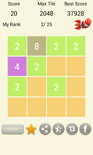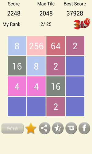 4096 je logická hra, má dlaždice s čísly od 2 do více než 2, cílem hráčů je získat 4096 číselný dlaždice sloučením nižších číselných dlaždic. Chcete -li sloučit dlaždice přejetím doleva, doprava, shora, dole, když jsou dvě dlaždice stejného počtu skluzavky, stanou se novým číslem (2 x předchozí číslo).Funkce-