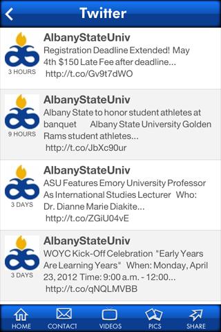 jděte zlatí berani! Státní univerzita v Albany je nyní přístupná stisknutím tlačítka.pomocí aplikace státu Albany můžete číst nejnovější zprávy o kampusu, prohlížet si události na akademické půdě a sdílet aplikaci prostřednictvím Facebooku, e-mailu, Twitteru a textových zpráv.