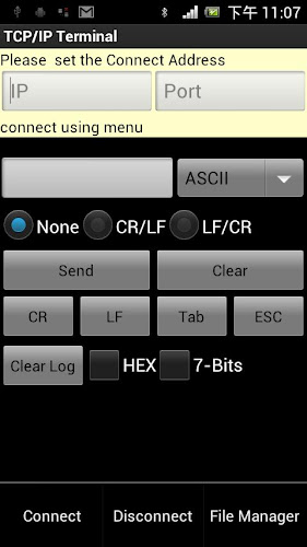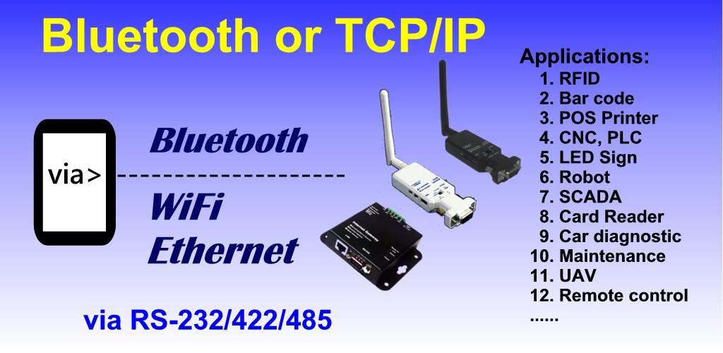 =============== Bluetooth spp a TCP/IP terminal ================Bluetooth spp a TCP/IP terminál je terminátor terminálu prostřednictvím Bluetooth, Wifi nebo Ethernet k profilu profilu portů. Přenosná zařízení Android se mohou spojit se vzdálenými zařízeními Bluetooth podporující profil Bluetooth sériového portu (SPP) nebo TCP/IP, které s nimi vymění data obousměrně