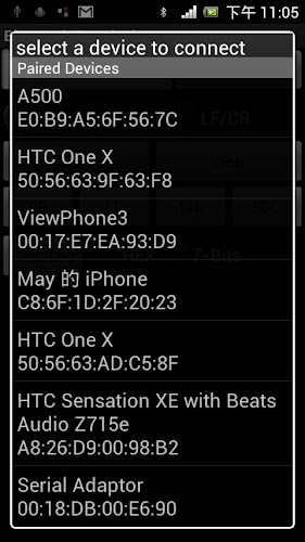 Aplikace terminálu podporuje jak Bluetooth spp, tak amp; TCP/IP na emulátor sériového portu.