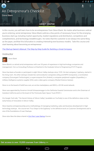 v tomto kurzu se od steva blanka naučíte, jak být podnikatelem. bez ohledu na to, do jaké obchodní vertikály vstupujete, sériový podnikatel Steve blank nastiňuje několik bodů, na které je třeba se zaměřit pro začínající...