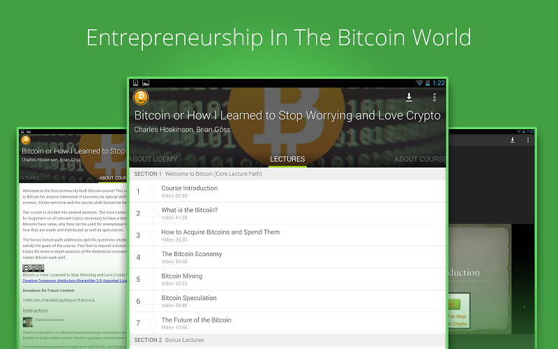 Analýza A Revize Aplikací Pro Android: Beginners Bitcoin Course, Vyvinuté Společností Udemy. Uvedeno V Kategorii Vzdělávání. Aktuální Verze Je 1.9, Aktualizována Na 11/11/2017 . Podle Recenzí Uživatelů Na Google Play: Beginners Bitcoin Course. Dosaženo Více Než 10 Tisíc Instalací. Beginners Bitcoin Course Má V Současné Době Recenze 56, Průměrné Hodnocení 4.1 Hvězd