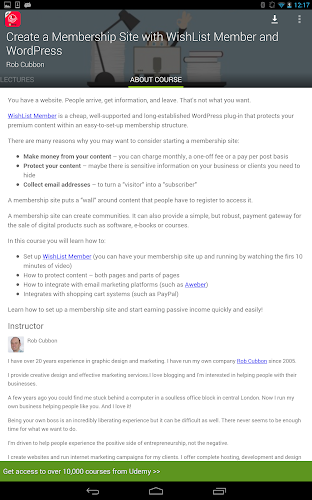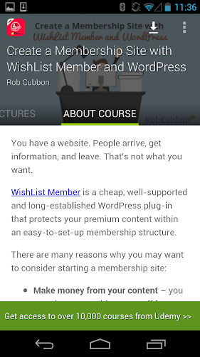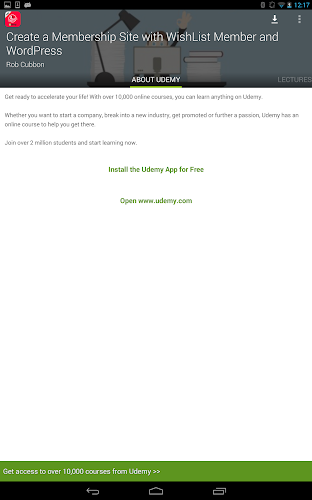 Analýza A Revize Aplikací Pro Android: Membership Site Course, Vyvinuté Společností Udemy. Uvedeno V Kategorii Vzdělávání. Aktuální Verze Je 1.9, Aktualizována Na 17/10/2017 . Podle Recenzí Uživatelů Na Google Play: Membership Site Course. Dosaženo Více Než 200 Instalací. Membership Site Course Má V Současné Době Recenze 2, Průměrné Hodnocení 3.0 Hvězd
