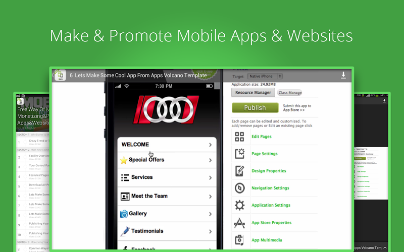 http://www.appsvolcano.com, internetová platforma, která umožňuje vytvářet mobilní aplikace během několika minut. I ti, kteří nemají speciální znalosti, mohou úspěšně vytvářet mobilní aplikace a vydělávat na nich.