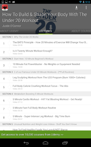 Analýza A Revize Aplikací Pro Android: Twenty Minute Workout, Vyvinuté Společností Udemy. Uvedeno V Kategorii Vzdělávání. Aktuální Verze Je 1.9, Aktualizována Na 11/11/2017 . Podle Recenzí Uživatelů Na Google Play: Twenty Minute Workout. Dosaženo Více Než 2 Tisíc Instalací. Twenty Minute Workout Má V Současné Době Recenze 9, Průměrné Hodnocení 3.0 Hvězd