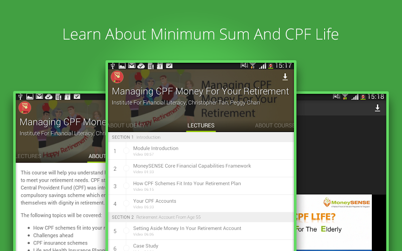 This course will help you understand how you can manage your CPF accounts to meet your retirement needs. CPF stands for Central Provident Fund. The Central Provident Fund (CPF) was introduced in Singapore in 1955. It is a compulsory savings scheme which ensured that workers could support themselves with dignity in retirement.The following topics will be covered: