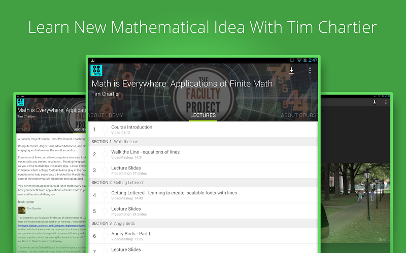 Tim Chartier je docentem matematiky na Davidson College. Je držitelem ceny National Teaching Award od Matematické asociace Ameriky.