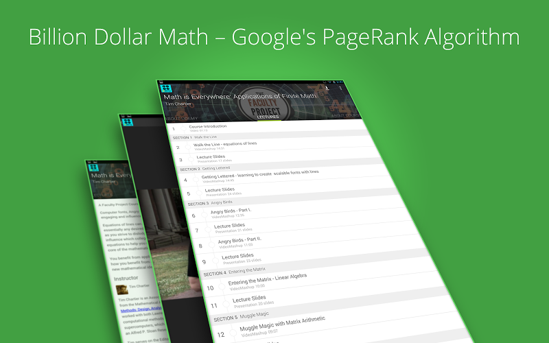 Projektový kurz fakulty - nejlepší profesoři vyučující světpočítačová písma, Angry Birds, March Madness a Google - zní jako zábava? Konečná matematika je skutečně poutavá a ovlivňuje svět kolem nás.