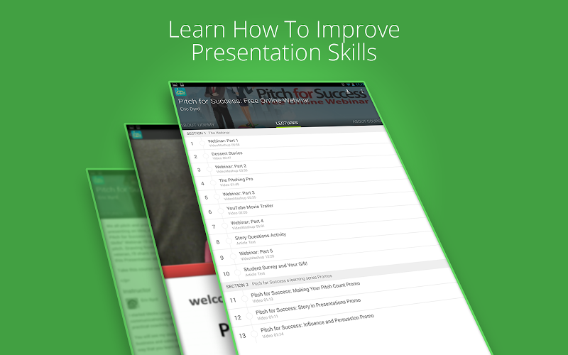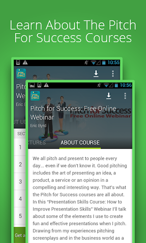 • Sledujte kurzy v offline: Ušetřete kurzy pro offline sledování, takže je můžete sledovat, zatímco jste v letadle nebo metru! Tvůrce Pitch for Success