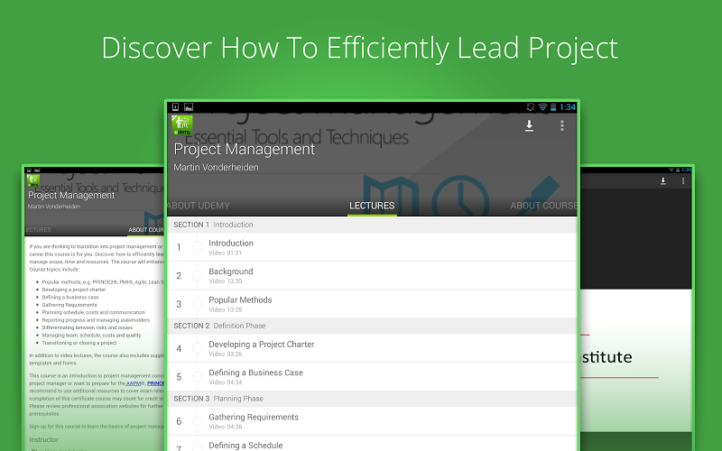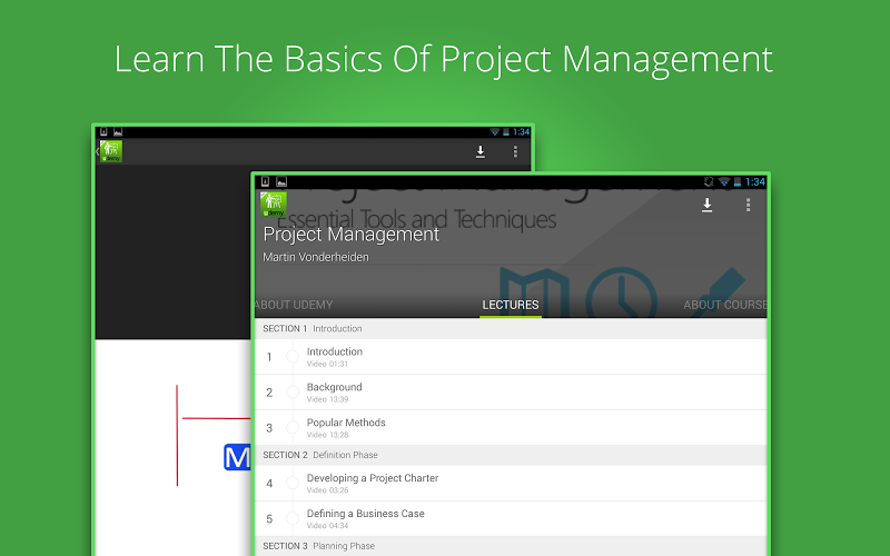 Nainstalujte aplikaci „Project Management Tutorial“, abyste se dnes naučili základy projektového řízení a připojte se k více než 2 000 000 lidem, kteří se již učí o Udemy.