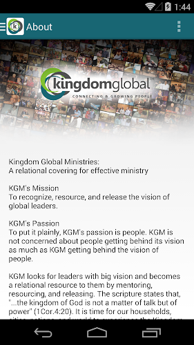 Aplikace Kingdom Global Ministries - dynamický způsob, jak zůstat ve spojení s KGM (Kingdom Global Ministries) kdykoli, kdekoli, na vašem zařízení iOS nebo Android. Tato bezplatná aplikace vám poskytuje neomezený přístup k těmto...