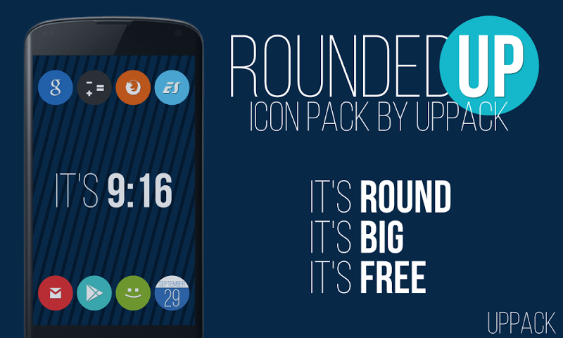 Analýza A Revize Aplikací Pro Android: Rounded UP - icon pack, Vyvinuté Společností UPpack. Uvedeno V Kategorii Personalizace. Aktuální Verze Je 1.0.0, Aktualizována Na 16/02/2014 . Podle Recenzí Uživatelů Na Google Play: Rounded UP - icon pack. Dosaženo Více Než 100 Tisíc Instalací. Rounded UP - icon pack Má V Současné Době Recenze 6 Tisíc, Průměrné Hodnocení 3.7 Hvězd