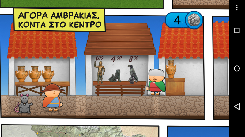 "Syracuse 230 BC. An “olkas” lies anchored in the bustling port of the rich Sicilian city. The large merchant ship is laden with goods: cereals and wine, pots and textiles. It is preparing to set sail. Among those preparing to embark is Timodamos. He is a merchant. He has purchased the goods he is interested in: cereals and pots. His journey has a different purpose however. He wants to visit Dodoni, in order to receive an oracle from the gods. He wants to ask Zeus: Should he continue being a trader on land and at sea or should he stop? Times are hard. Pirates are roaming the Ionian and Adriatic Sea. From Chaonia to Akarnania, cities are being besieged and plundered, alliances are changing, enemies are becoming friends and friends becoming enemies. The Epirotes, Aetolians, Macedonians, Akarnanes and Illyrians keep changing sides and allies, and are constantly at war. Timodamos’ companion on this journey is a small mouse, Molossides...""The Adventures of Molosidi: The Journey of Timodamou" is an interactive educational tour of the past through the exhibits of the Archaeological Museum of Ioannina.
