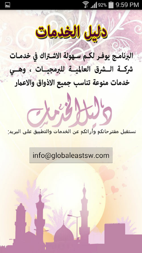 Analýza A Revize Aplikací Pro Android: دليل الخدمات, Vyvinuté Společností Global East Software LLC. Uvedeno V Kategorii Zábava. Aktuální Verze Je 1.1, Aktualizována Na 17/12/2014 . Podle Recenzí Uživatelů Na Google Play: دليل الخدمات. Dosaženo Více Než 10 Tisíc Instalací. دليل الخدمات Má V Současné Době Recenze 97, Průměrné Hodnocení 4.3 Hvězd
