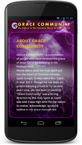 „Grace Community“ - společenství lidí, kteří obdrželi milost Ježíše Krista tím, že věřili ve své hotové dílovýše bylo semeno, které Duch svatý vložil do srdce křesťanského ministra Sajith Joseph, laskavě zvaný Bro. Sajith, v roce 2011. Přestože byl již několik let horlivým cestovním kazatelem, přesto bylo semeno „milosti„ milosti “silným směrem Ducha svatého, protože Sajithovi bylo řečeno, že je nejvyšší čas, aby si národ uvědomil, přijímal a věřil ve svou milost prostřednictvím hotového díla Ježíše Krista na kříži. (Jeho svědectví (hypertextový odkaz) si můžete přečíst na tomto webu pro více informací). Bratrova břemeno vytvořilo komunitu ministerstva milosti v roce 2011.