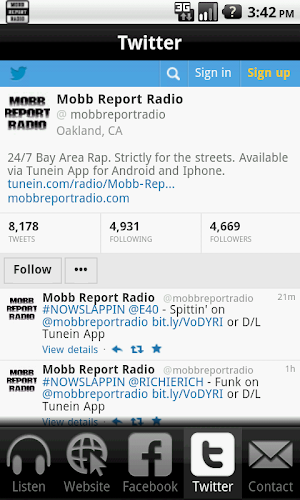 Analýza A Revize Aplikací Pro Android: Mobb Report Radio, Vyvinuté Společností ViaStreaming.com. Uvedeno V Kategorii Hudba A Zvuk. Aktuální Verze Je 1.0, Aktualizována Na 18/08/2013 . Podle Recenzí Uživatelů Na Google Play: Mobb Report Radio. Dosaženo Více Než 1,000 Instalací. Mobb Report Radio Má V Současné Době Recenze 16, Průměrné Hodnocení 5.0 Hvězd
