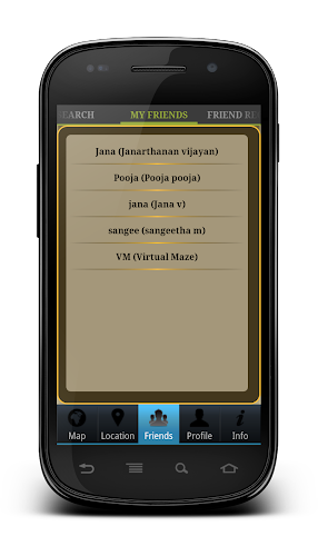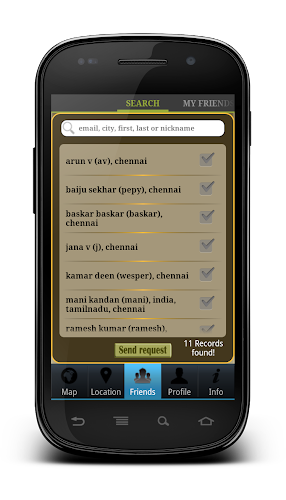 * Vytvořte aktivní některou z cílových míst (ke kterým potřebujete směr) na stránce „umístění“. -> a hledat přátele pomocí možnosti vyhledávání.