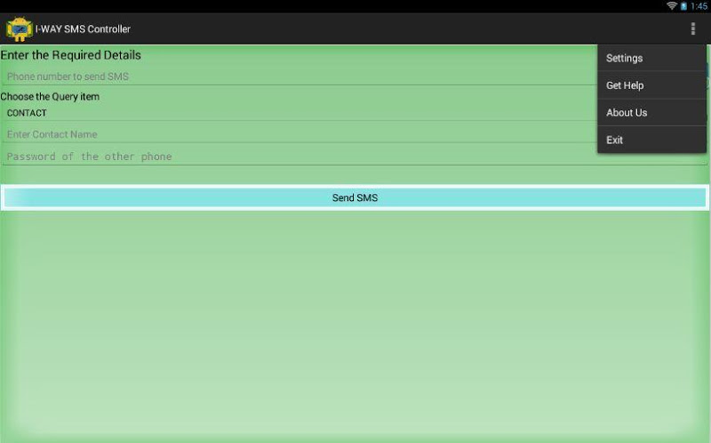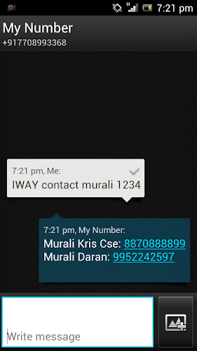 vítejte na iway sms, nyní ovládejte svůj telefon, který jste nechali doma. mnoho lidí má u sebe více než jeden mobil. jeden může být pro práci a druhý může být pro osobní použití. ale jsou chvíle, kdy s sebou nosíme pouze jeden mobil a informace z druhého mobilu mohou být naléhavě potřeba. vezměme si například situaci, kdy je obchodník na dovolené a potřebuje číslo svého klienta okamžitě, ale nechal svůj oficiální telefon (telefon bez připojení k internetu) doma, který je uzamčen. v takové situaci můžeme použít naši aplikaci a odeslat sms dotaz na telefon s Androidem ponechaný doma a automaticky získat zpět požadované informace prostřednictvím sms. proto naše aplikace funguje jako komunikační médium pro přenos malých informací mezi normálním mobilem a mobilem se systémem Android***důležité***