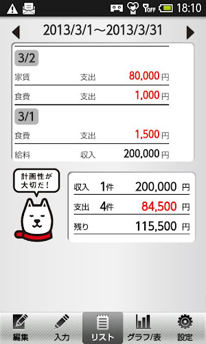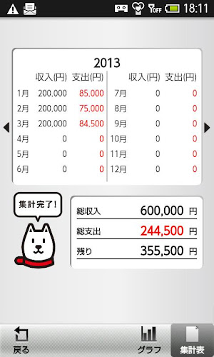 Tato aplikace je aplikace, která otci rodiny Shirato umožňuje spravovat svůj příspěvek.Můžete zadávat své příjmy a výdaje na denní bázi a kontrolovat své měsíční příjmy a výdaje v grafech a tabulkách.