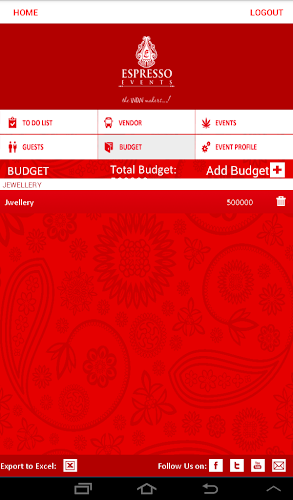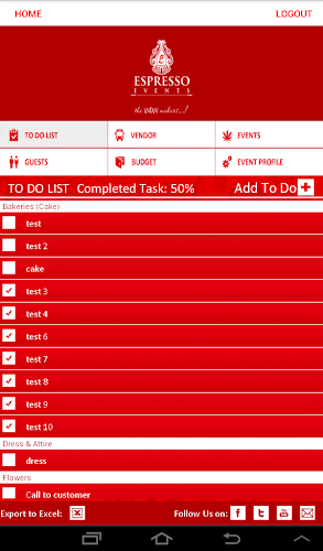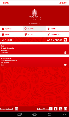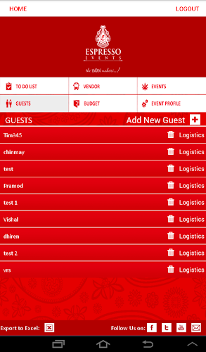 Události Espresso vyvinuly tuto aplikaci pro své zákazníky, aby mohli snadno spravovat svůj seznam úkolů, seznam hostů, seznam dodavatelů a všechny informace o kliknutí na nabitý plán jejich akce. Toto je velmi uživatelsky přívětivéFunkce více uživatelů také pomáhá synchronizovat data od více uživatelů, díky nimž je správa událostí velmi snadná.