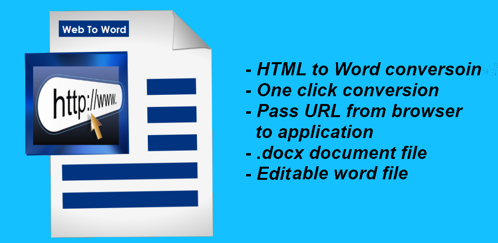 Převést webovou stránku na dokument Word. Zadejte adresu URL webové stránky a kliknutím na převod vygenerujte soubor upravitelných slov. Sdílejte URL URL z vašeho prohlížeče na aplikaci a dokument Word je připraven.V Současné Době Nabízíme Verzi 1.0. Toto Je Naše Nejnovější, Nejvíce Optimalizovaná Verze. Je Vhodný Pro Mnoho Různých Zařízení. Zdarma Ke Stažení Přímo Apk Z Obchodu Google Play Nebo Jiných Verzí, Které Hostujeme. Kromě Toho Si Můžete Stáhnout Bez Registrace A Bez Nutnosti Přihlášení.