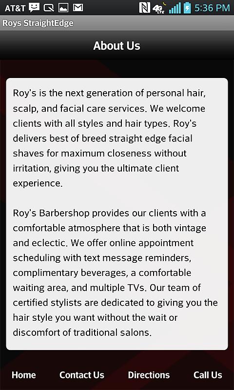 mít okamžitý přístup k Roy's straight edge s novou aplikací Roy's straight edge. provádět rezervace, prohlížet speciální nabídky a další...funkce: