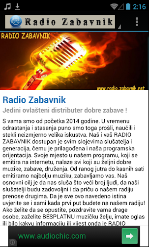 Analýza A Revize Aplikací Pro Android: Radio Zabavnik, Vyvinuté Společností Webradio Hosting. Uvedeno V Kategorii Zábava. Aktuální Verze Je 1.0, Aktualizována Na 26/09/2018 . Podle Recenzí Uživatelů Na Google Play: Radio Zabavnik. Dosaženo Více Než 100 Instalací. Radio Zabavnik Má V Současné Době Recenze 7, Průměrné Hodnocení 4.0 Hvězd